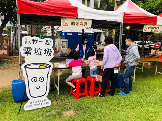 此外,在大型活動則結合縣內1場環境教育大型活動(2020玩具復活節-玩具新豐彩,什麼toy都能enjoy)、1場次親子嘉年華(竹東親子嘉年華地下考古世界)及2場次星光電影節(藝起玩竹東親子探險趣星光電影院、內灣星光電影節),本局推動活動會場禁用一次性餐具及飲料杯,並提供可重複使用餐具材質飲料杯、餐具服務給活動人員使用,依統計結果指出實際減少約1,000個一次性容器使用(一次性杯子減量約800個、一次性餐具減量約200個)。